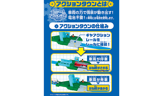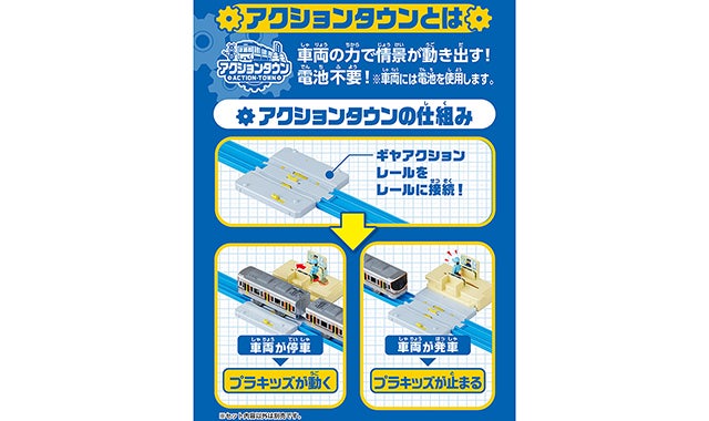 車両の力で情景が動き出す!アクションタウンのプラキッズ改札駅が登場!