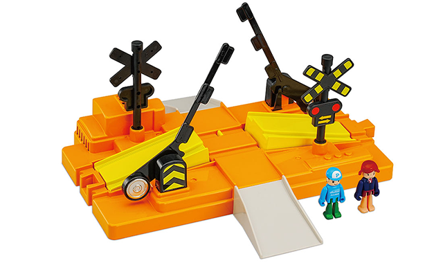 ■車両が通ると遮断かんがおりて、「チン♪チン♬」と音が鳴るふみきりセットです。