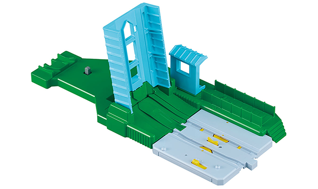 車両が通ると橋がおります。トミカタウンに組み込んで遊べます。
