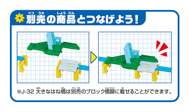 「R-18 坂曲線レール」「J-14 ブロック橋脚」と組み合わせも可能です。
