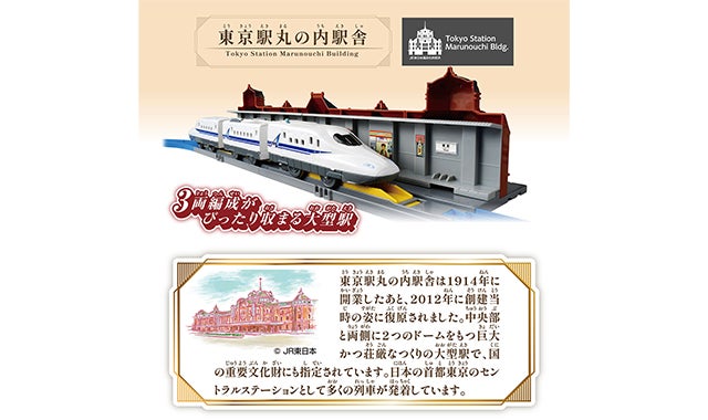 ■中央部と南北2つのドームをもつ「東京駅丸の内駅舎」の姿をプラレール仕様で忠実に再現。