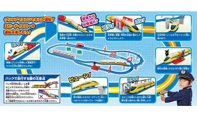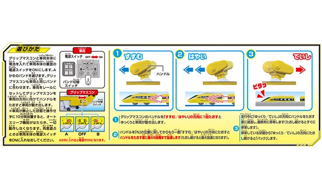 プラレール鉄道のスピードイエローをグリップマスコンで簡単操作、自在にコントロール!