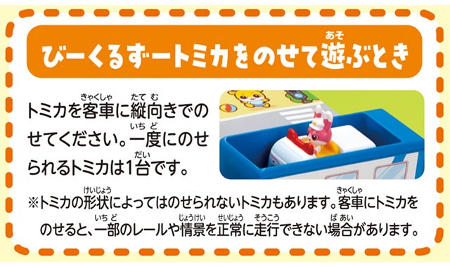 ・客車にはびーくるずートミカ(別売り)を載せることもできます。