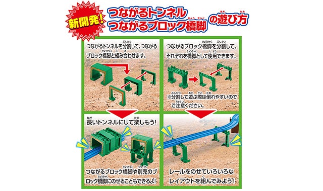 ■「つながるトンネル」は「つながるブロック橋脚」と合わせて大きなトンネルや、高架のトンネルがつくれます。