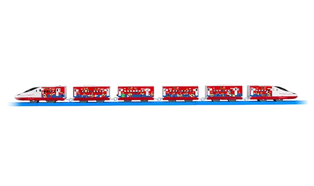 ミッキーマウスのようなイメージでデザインされた流線形のボディが特徴的なプラレールオリジナルの超特急列車が登場!