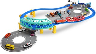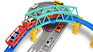 曲線で使用できる、新しい情景部品が3種類入った、トミカとプラレールで遊べるオールインワンセットが登場!