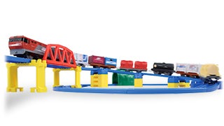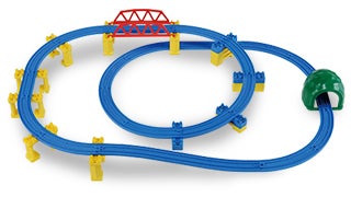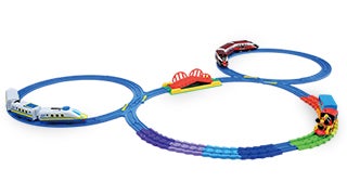 自由に曲げることができる「まがレール」を中心にしたレールセットです。