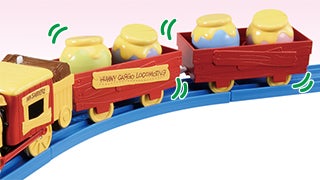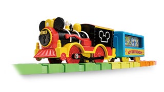 「ミッキーマウス ウェスタンロコモーティブ」車両と、ミッキーのマジックショーが楽しめる「回転広告貨車」付きです。