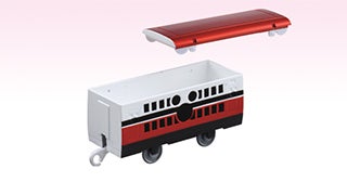 2両目は、屋根を外して荷物やトミカをのせて遊べます。