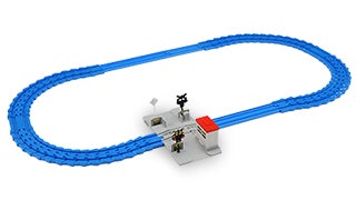 レールの端と端をつないでいくだけで、かんたんにレイアウト(1周)が組みあがります。
