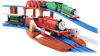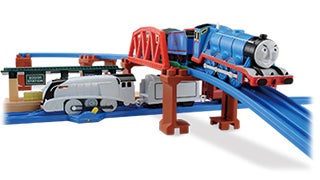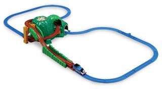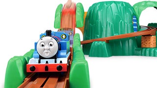 トーマスが大きな山をぐるぐる登って、急な坂を一気にかけおりる!