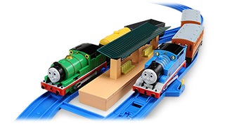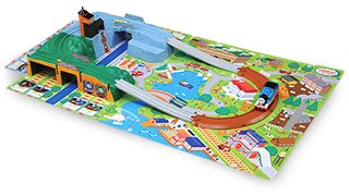 パッと開いて坂レールを2本セットするだけでプラレールトーマスワールドが広がる立体マップが登場!