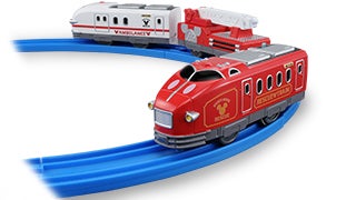 スマホからは、前進2速・停止・コントロールが可能です。さらに映像には運転が楽しくなるエフェクトがかかり、ずっと見ていても飽きません。スマホがなくても通常のプラレールと同様にON/OFFスイッチの操作で車両走行が楽しめます。