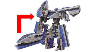 4両編制セットで3両合体+1両大型武器になります。別売りの既存シリーズ(E5 はやぶさ、E6 こまち、E7 かがやき、E3 つばさ アイアンウイング、E3 つばさ フレアウイング、H5 はやぶさ)と合体して、5両合体の大型ロボに変形合体が可能。