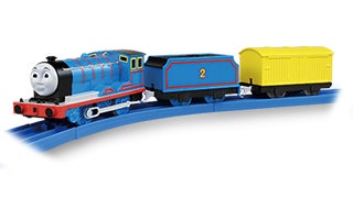 「エドワード」がCGアニメの顔になってリニューアル。3両目「いじわるかしゃ」の顔もリニューアル!3両編成、1スピード走行・スイッチOFFで手転がし可能です。