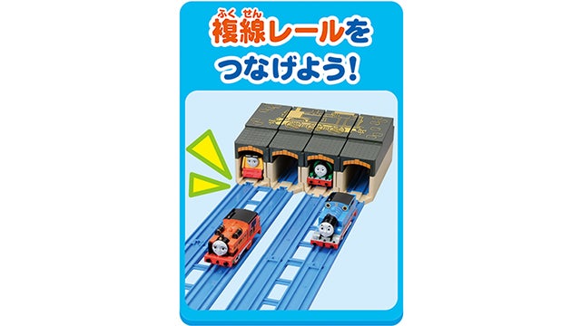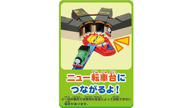 トーマス、テレンス、パーシーが楽しいアクションで協力し合い石炭を運ぶセットが登場!1台の動力車が次々にボディを変えてレールの上を走ります。