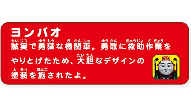赤いボディの勇敢で親切なきかんしゃで、煙突には龍の顔、炭水車には虎が描かれています。