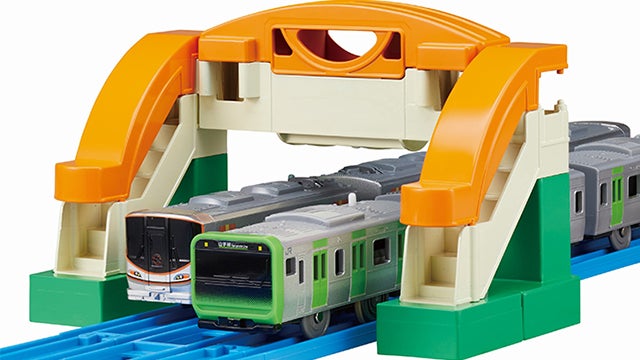 トミカ(ミニカー)の発車遊びを楽しめる情景です。
