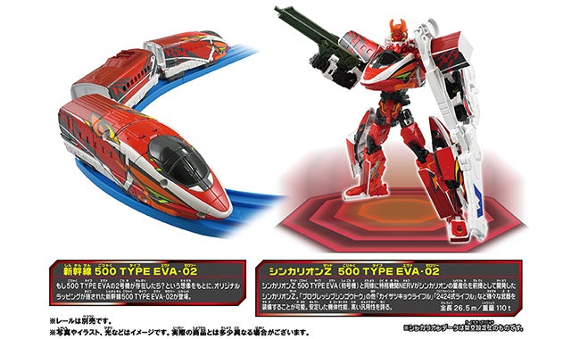 エヴァンゲリオン2号機のデザインをモチーフにラッピングが施された新幹線500系がプラレールに登場。