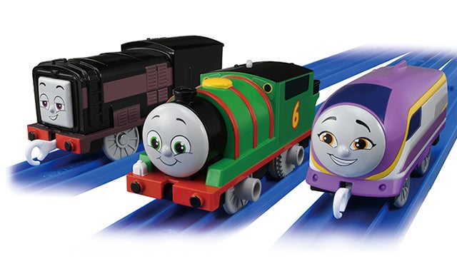 2022年冬、12年ぶりにフルリニューアルされるアニメ「きかんしゃトーマス」に登場するキャラクター、パーシー、カナ、ディーゼルの車両セットが登場!