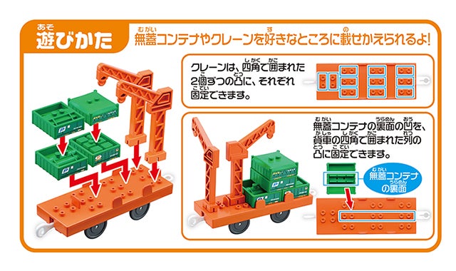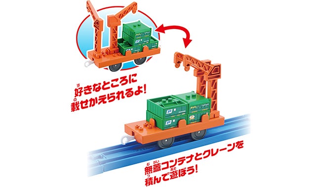 コンテナとクレーンは積み降ろし遊びができて、好きな所に載せ替えができます。