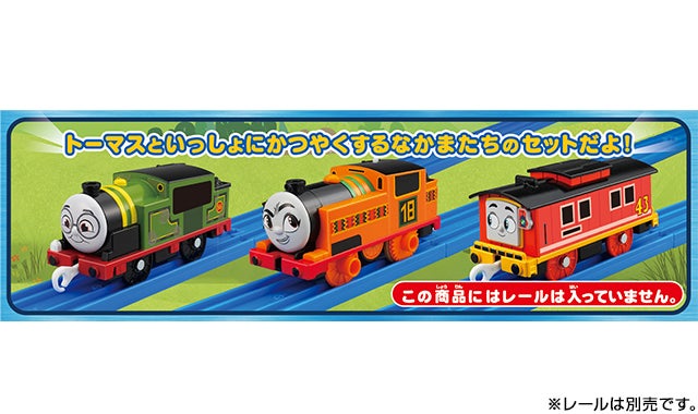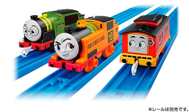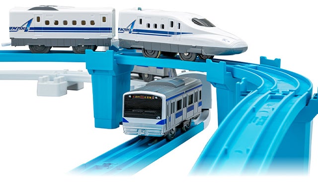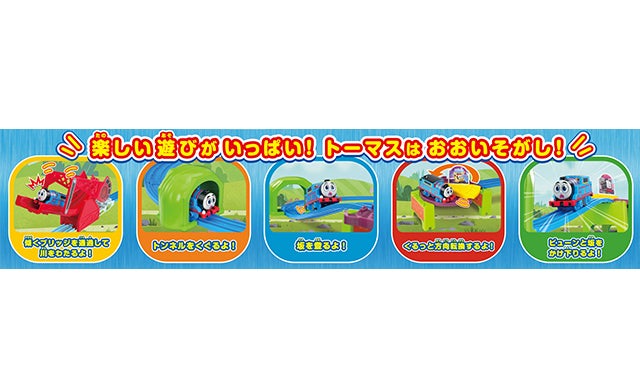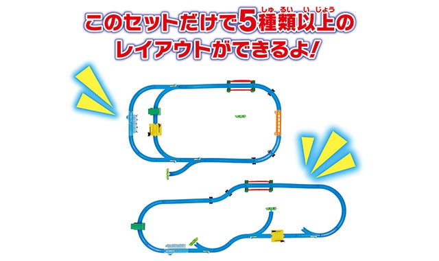 連結遊びもできるオリジナル新車両と、組み合わせて遊べる新しいトンネルや橋脚、新レールも入った大ボリュームなオールインワンセット!