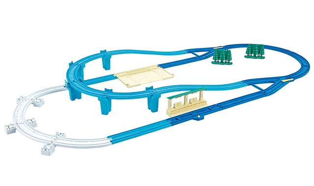 他にも人気のレイアウト「坂」「立体交差」「駅」「踏切」がこれひとつで遊べる!