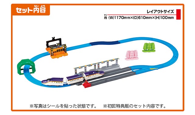 ※セット内容以外は別売です。(E8系つばさ以外のプラレール車両、プラキッズ、レール、トミカ(ミニカー)、トミカタウンのどうろ)