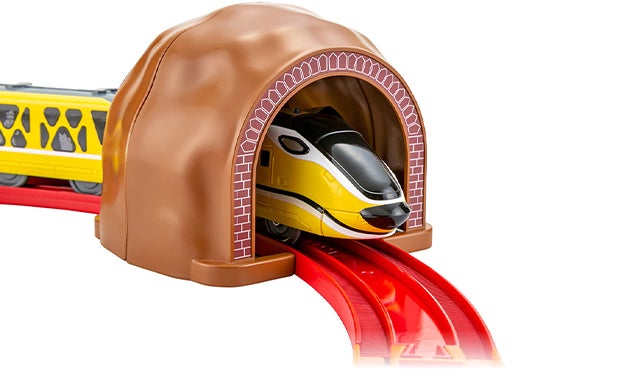 長い駅に変形させて連結編成を楽しんだり、レールと情景を組み合わせて最大3編成でも遊べる!
