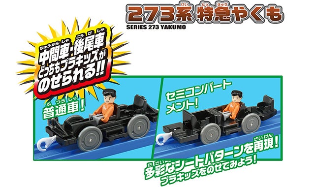 プラキッズが1体付属し、中間車と後尾車に乗せて遊ぶことができます。