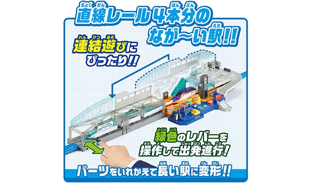 ■パーツを入れかえて連結遊びが楽しめる長い駅に変形できます。