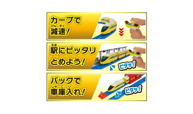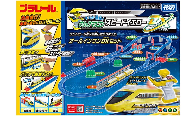 プラレール鉄道のスピードイエローをグリップマスコンで簡単操作、自在にコントロール!