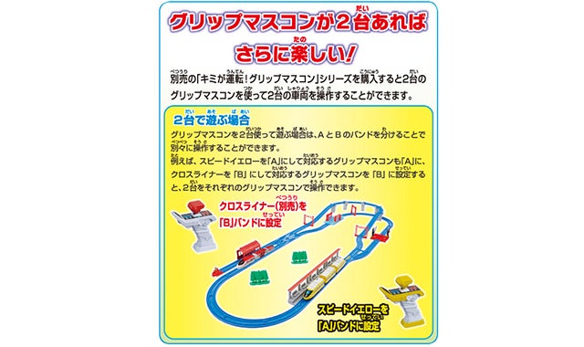 ■グリップマスコンシリーズの車両が2台あればAとBのバンド切り替えで別々に走行させることが可能