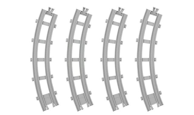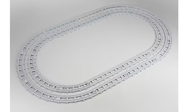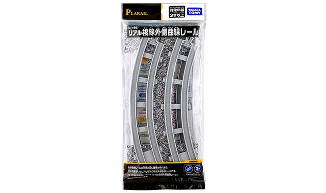 4本使用すると半円がつくれ、リアル曲線レールと合わせれば、複線にすることができます。