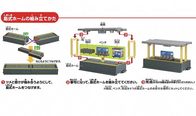 本商品を複数組み合わせて長い島式ホームにすることができます。