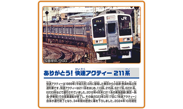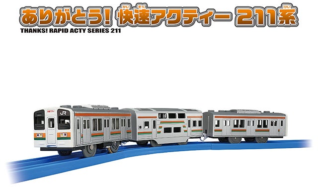 2012年に営業運転が終了した「快速アクティー211系」がプラレールに登場です。