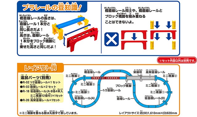 ※橋直線レールとブロック橋脚を積み重ねることはできません。