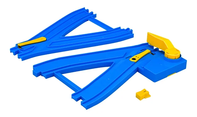 ・自動Y字ポイントレールはブロック橋脚の上にのせて遊ぶことができます。