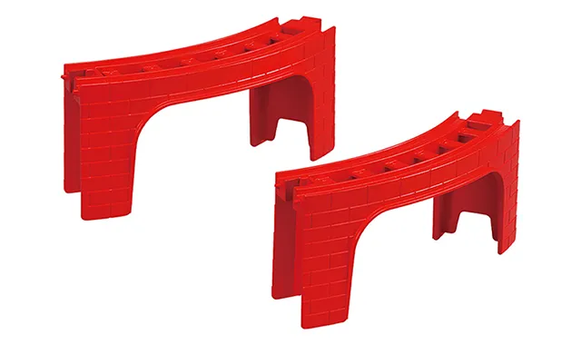 曲線レールと橋脚が一体になったレールで、高架のレイアウトを簡単に楽しむことができるレールです。