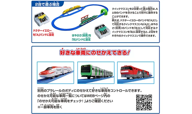 ■クイックマスコンシリーズの車両が2台あればAとBのバンド切り替えで別々に走行させることが可能