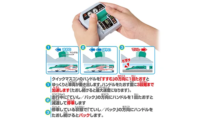 3段階加速・停止・バック、リアルな走行をクイック操作で楽しもう!!