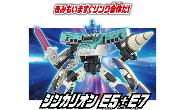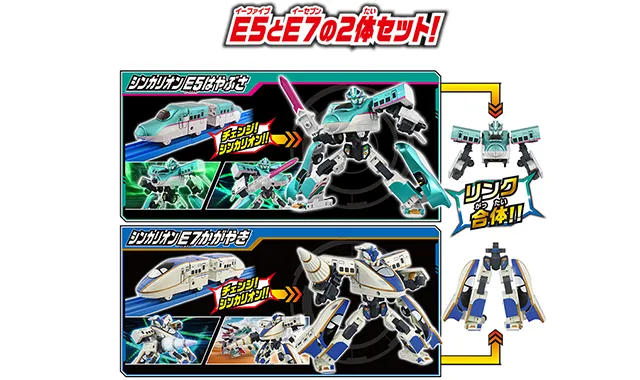 「シンカリオン E5+E7」「シンカリオン E7+E5」の2パターンのリンク合体が楽しめる!