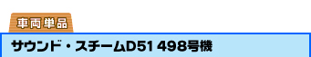 「サウンド・スチームD51」がついに単品で発売! JR東日本の臨時列車やイベント列車で活躍中の 498号機仕様で登場。 単3乾電池3本使用(別売り) ※レールははいっていません。