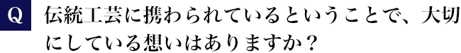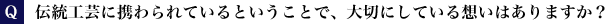 古くから伝わる伝統工芸を、私が仕事として取り組むことで、先人が守ってきた技術や美意識を今に伝えることができます。そして私がまた次の世代にそれを伝授することで、未来へと伝えることができる。そういったことを目指していきたいと思っています。