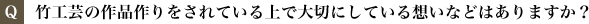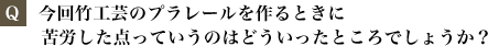 すごく新しい試みで私自身驚きもありました。しかし、見てくださる方がもしその美しさを感じていただけるなら、他の竹工芸品にも目を向けるきっかけになると思いますし、そのように願っています。