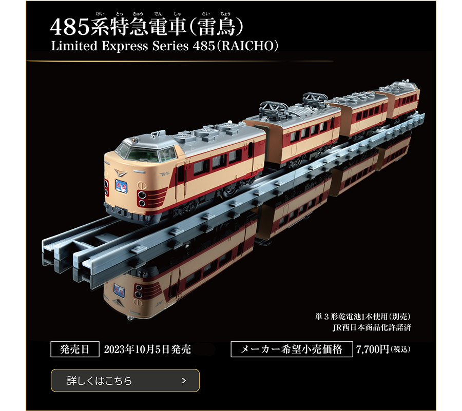 485系特急電車(雷鳥)|Limited Express Series 485(RAICHO)|発売日:2023年10月5日発売予定|メーカー希望小売価格:7,700円(税込)|単3形乾電池1本使用(別売)|JR西日本商品化許諾済