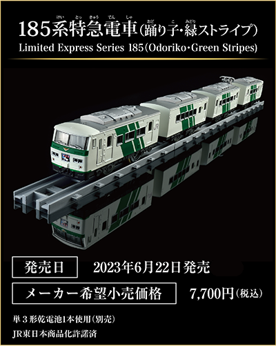 185系特急電車(踊り子・緑ストライプ)|Limited Express Series 185(Odoriko・Green Stripes)|発売日:2023年6月22日発売予定|メーカー希望小売価格:7,700円(税込)|単3形乾電池1本使用(別売)|JR東日本商品化許諾済