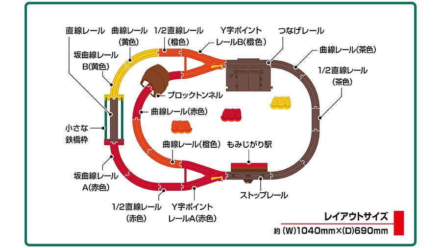 「景色のカラーレールキット〜紅葉と鉄道〜」のレイアウト例|※立ち木、ブロックトンネルは自由に配置してください。