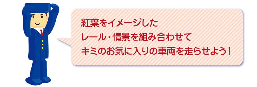 「紅葉をイメージしたレール・情景を組み合わせてキミのお気に入りの車両を走らせよう!」