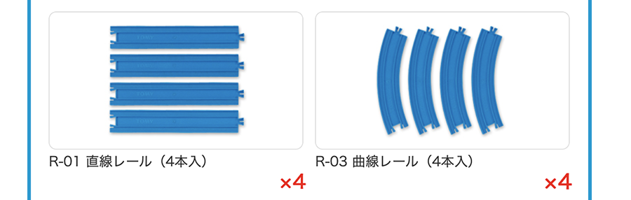 R-01直線レール(4本入り)×4、R-02 1/2直線レール(6本入り)×1